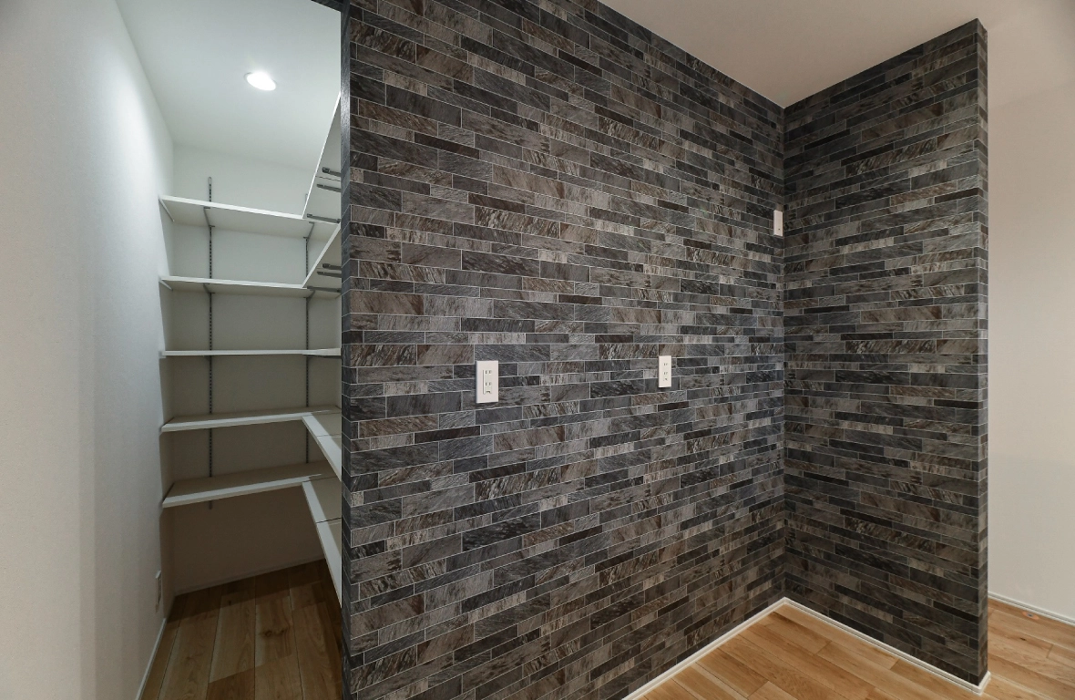 キッチン背面には便利なパントリー収納を完備。まとめ買いをした食品や日用品のストックの他、日常使う調理道具などの収納に重宝します。