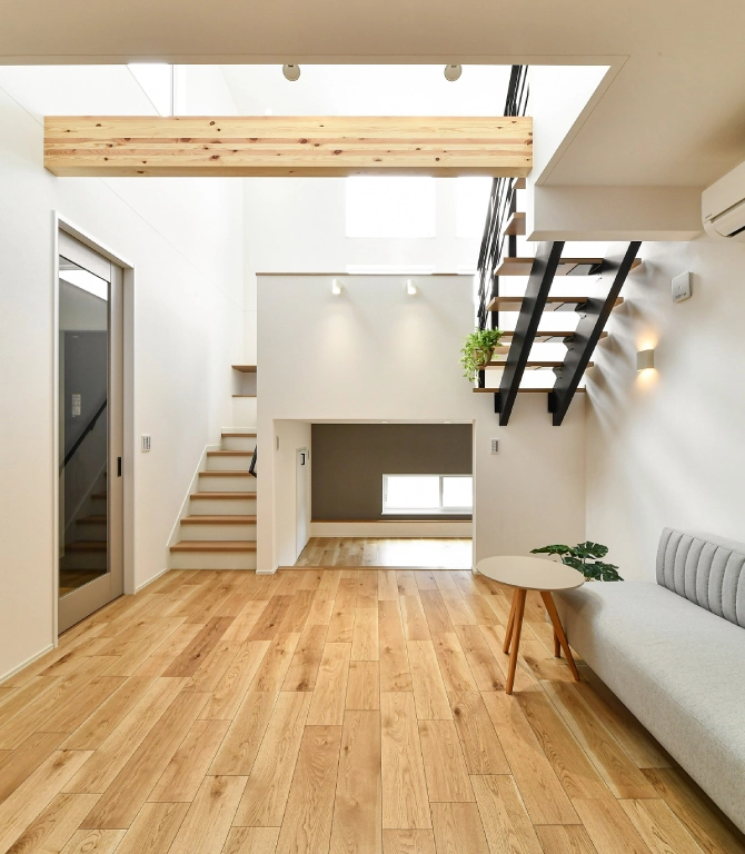吹抜け・スキップフロア・フリースペースが設けられており、広がりのある空間設計になっています。